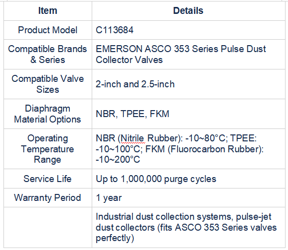 - FKM: -10 درجه سانتیگراد تا 200 درجه سانتیگراد. Q3: آیا کیت C113684 واقعاً می تواند جایگزین قطعات یدکی اصلی EMERSON ASCO شود؟
