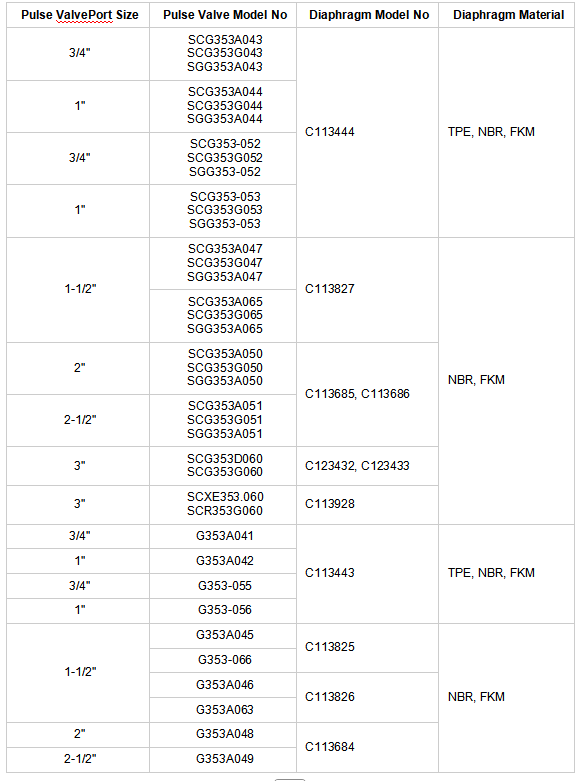 A1: کیت C113684 برای شیرهای پالس 2 اینچی و 2.5 اینچی مناسب است. برای اطمینان از تناسب کامل، اندازه سوپاپ را قبل از خرید بررسی کنید. برای سایر مشخصات یا سری ها، برای مرجع به نمودار کد سفارش زیر مراجعه کنید.